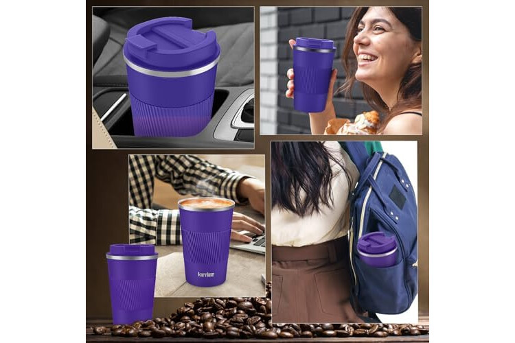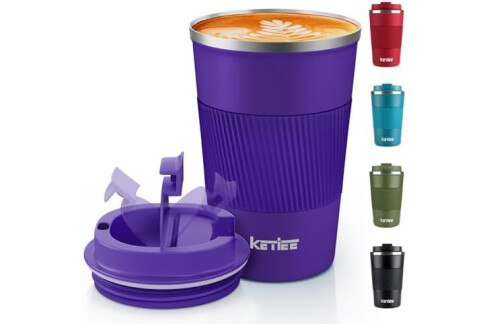 KETIEE Kaffeebecher to go,380ml Thermobecher Kaffee-to-go,Kaffeebecher Thermo,Doppelwandig Reisebecher Travel Mug,Vakuum Isolierbecher mit auslaufsicherem Deckel für Kaffee und Tee,Tiefes Lila
