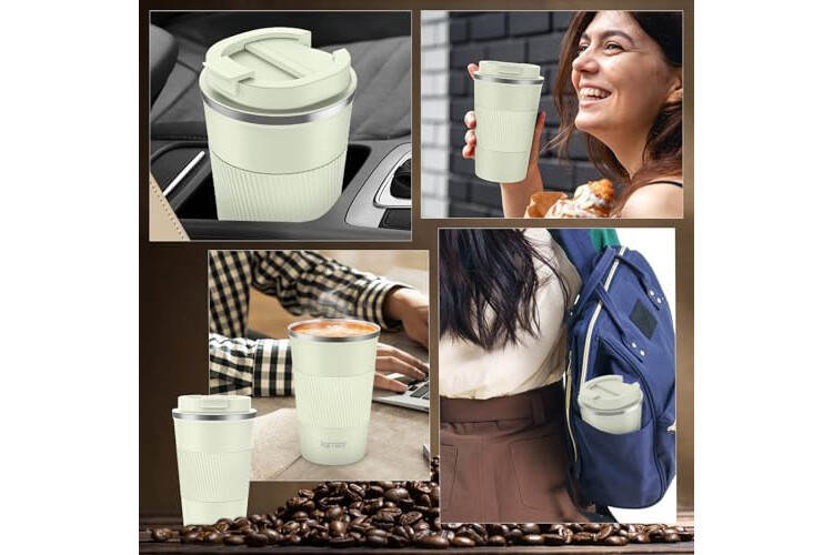 KETIEE Kaffeebecher to go,380ml Thermobecher Kaffee-to-go,Kaffeebecher Thermo,Doppelwandig Reisebecher Travel Mug,Vakuum Isolierbecher mit auslaufsicherem Deckel für Kaffee und Tee,Creme