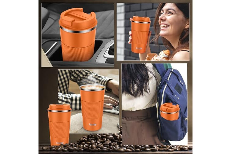 KETIEE Kaffeebecher to go,510ml Thermobecher Kaffee-to-go,Kaffeebecher Thermo,Doppelwandig Reisebecher Travel Mug,Vakuum Isolierbecher mit auslaufsicherem Deckel für Kaffee und Tee,Orange Braun
