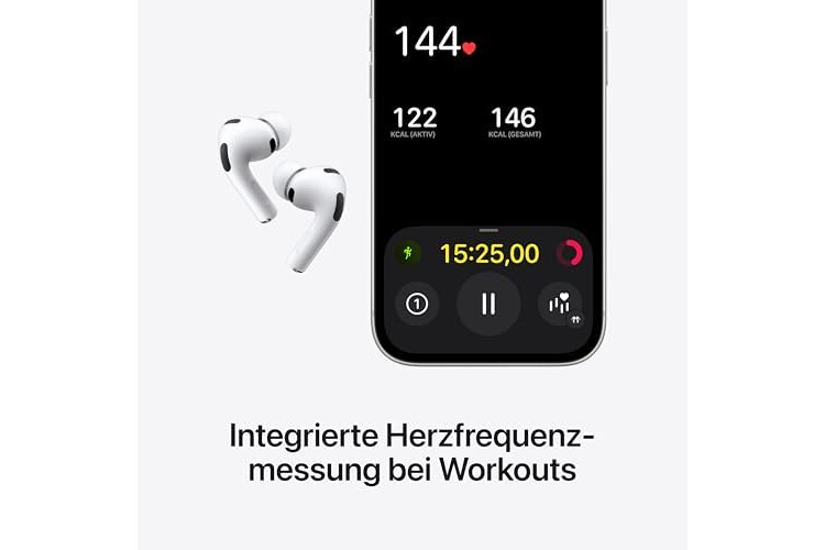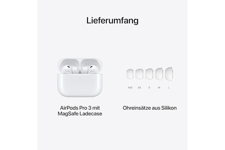 Apple AirPods Pro 3 Kabellose In‑Ear Kopfhörer, Aktive Geräuschunterdrückung, Herzfrequenzmessung, Hörgerätefunktion, Bluetooth Kopfhörer, 3D Audio, Hi‑Fi Sound, Laden über USB‑C