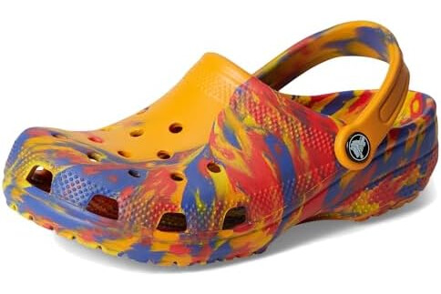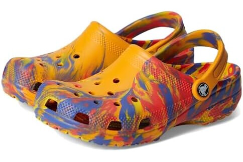 Crocs Kids' Classic Marbled Tie Dye Clog, Orange Zing/Multi, 13 Little Kid