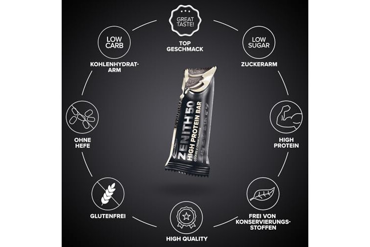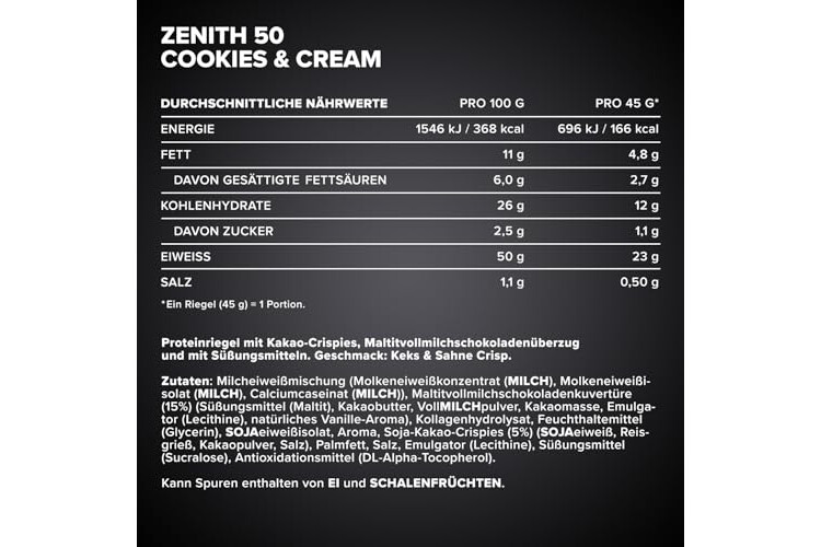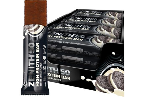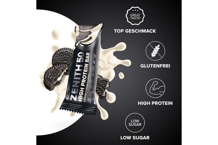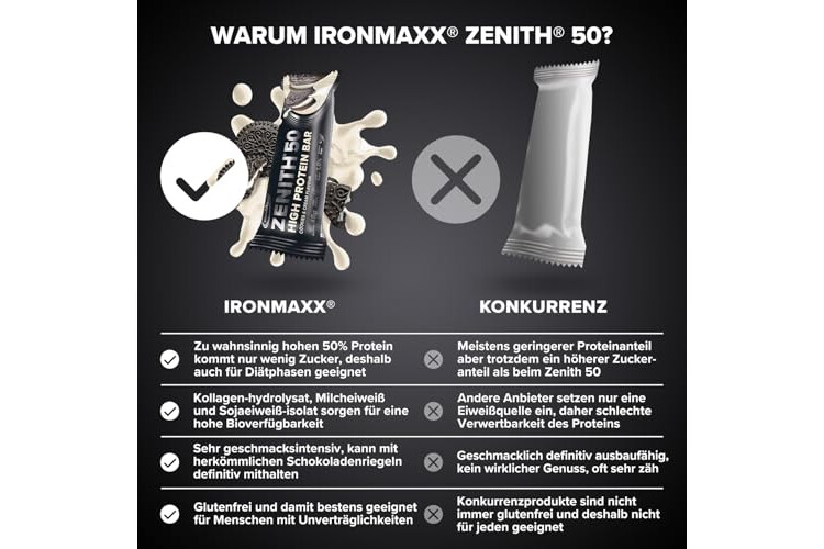 IronMaxx Zenith 50 High Protein Bar - Cookies & Cream - 16x45g | Eiweißriegel mit 50% Protein | Low Sugar Snack mit cremiger Umhüllung | High Proteinriegel für Muskelaufbau, Diät & Fitness