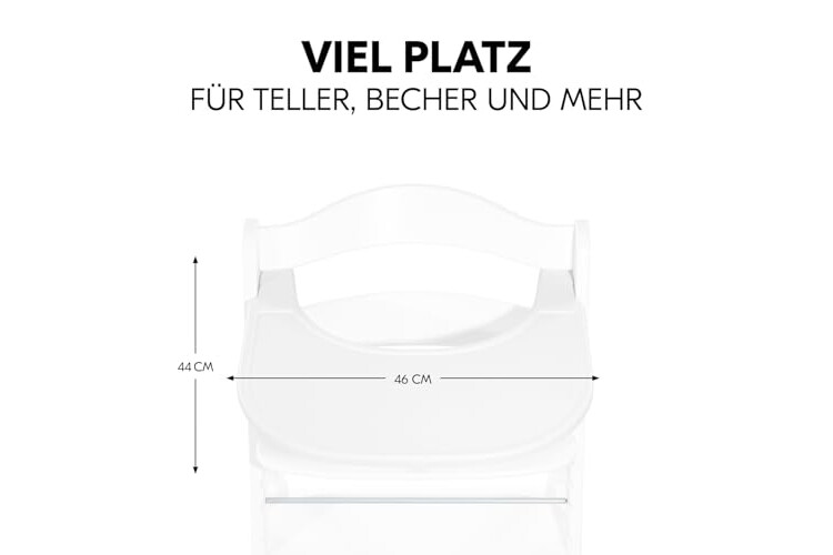 GRÖSSE XL Die vielseitige Evolutions-Hochstuhlablage mit nur einem Klick bietet viel Platz zum Essen und Spielen. Der erhöhte Rand schützt vor verschütteten Flüssigkeiten und verhindert, dass Geschirr oder Spielzeug herunterfallen.