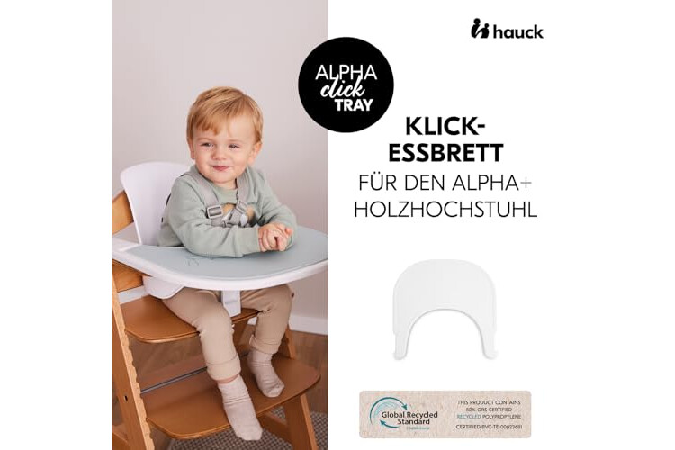 hauck Klickbrett Kompatibel mit Alpha+ & Beta+ Holzhochstuhl Alpha Click Tray, aus Recyceltem Material (GRS-zertifiziert), Schnelle Klickbefestigung am Hochstuhl, Einfach zu Reinigen (White)