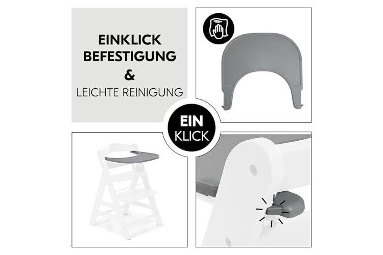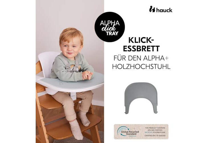 hauck Klickbrett Kompatibel mit Alpha+ & Beta+ Holzhochstuhl Alpha Click Tray, aus Recyceltem Material (GRS-zertifiziert), Schnelle Klickbefestigung am Hochstuhl, Einfach zu Reinigen (Grey)