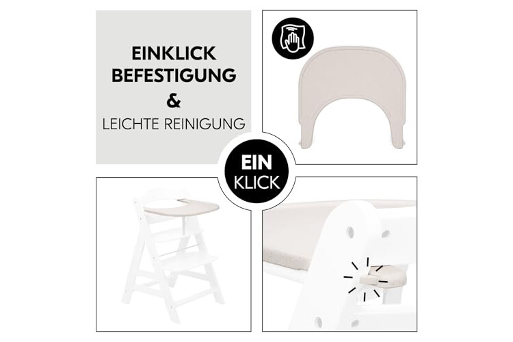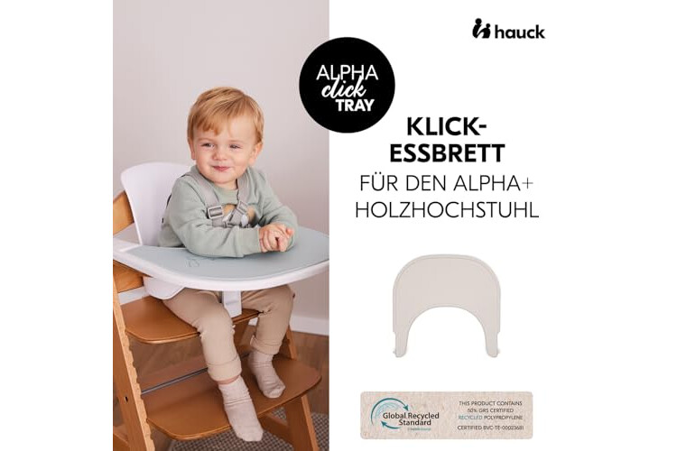 KLICK ESSTISCH FÜR DEN HAUCK HOLZHOCHSTUHL: Das Anklick-Essbrett ist in Sekunden fest am mitwachenden Kinderhochstuhl Alpha+ oder Beta+ fixiert, der nun überall freistehend genutzt werden kann