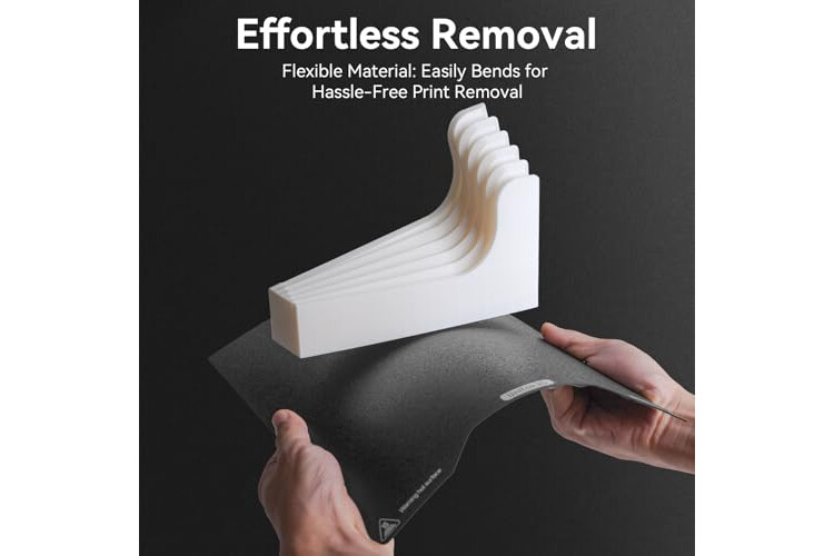 【Effortless Model Removal】Die glatte PEI-Seite sorgt für ein poliertes Finish der Modellsockel. Die Modelle lassen sich leicht abnehmen, ohne dass die Federstahlplatte gebogen werden muss, was sowohl Ihre Drucke als auch das Bett schützt.