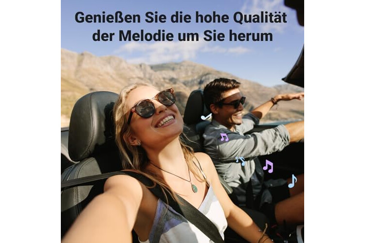 Bluetooth 6.0 und Stereo-Qualität: Bluetooth 5.4 erhöht einerseits die Übertragungsgeschwindigkeit und Stabilität der Audiowiedergabe erheblich, verlängert andererseits die effektive Übertragungsreichweite bis zu 10m. Isolationsmodul im Innen und leistungsstarke Kupferleitung verhindern elektromagnetische Störung effektiv, sodass man sauberen Bluetooth Stereoklang genießen kann.