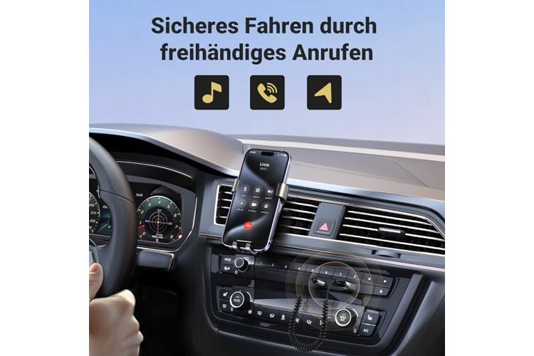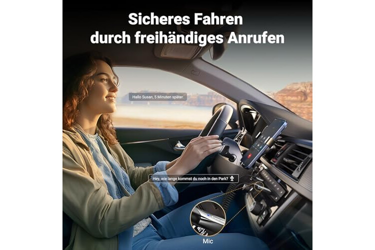 Freihändige Anrufe im Auto: Dank des eingebauten Mikrofons unterstützt der UGREEN Bluetooth Adapter Auto Freisprechen und Sprachnavigation während der Fahrt, sodass man Hände vom Lenkrad nicht trennen muss und sichereres Fahren hat.