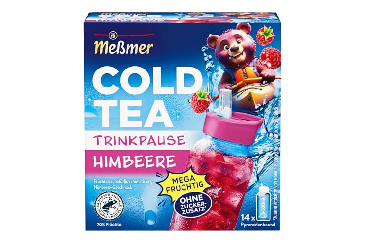 Meßmer Cold Tea Trinkpause Himbeere | Früchtetee, natürlich aromatisiert, Himbeere-Geschmack | für kalten Aufguss | 14 Pyramidenbeutel