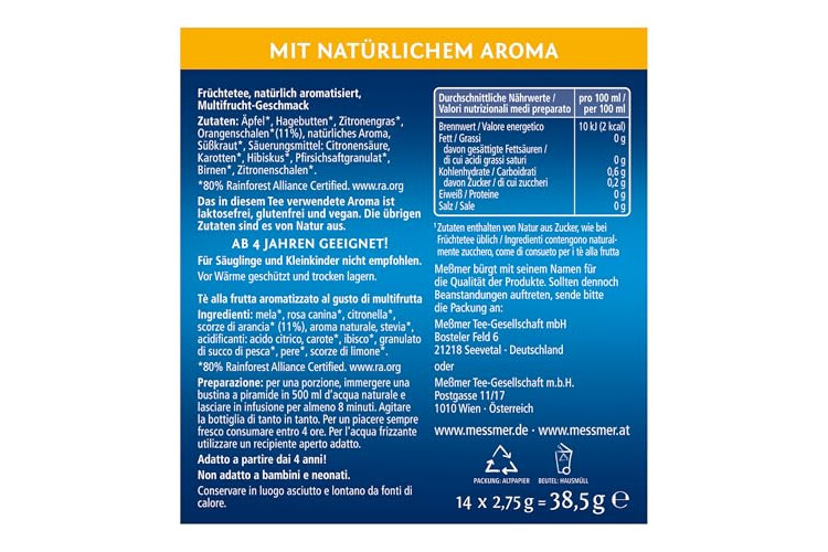 • Leckerer Früchtetee für zwischendurch: Multifrucht-Geschmack, ohne Zuckerzusatz – ideal für Schule, Sport & Freizeit.