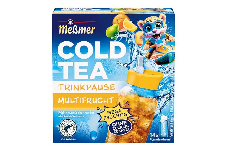 Meßmer Cold Tea Trinkpause Multifrucht | Früchtetee, natürlich aromatisiert, Multifrucht-Geschmack | für kalten Aufguss | 14 Pyramidenbeutel