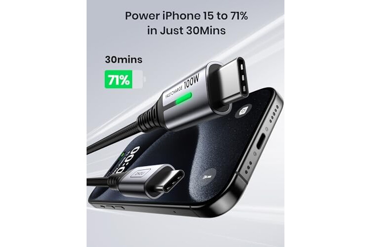 Holen Sie sich die schnellste Ladeleistung für Ihr iPhone 15: Erleben Sie die nächste Stufe des Ladens! Mit unserem blitzschnellen 100W USB-C auf USB-C Kabel erreicht Ihre iPhone 15 Serie in nur 30 Minuten erstaunliche 71% Akkuleistung. Verpassen Sie nicht diese Laderevolution!