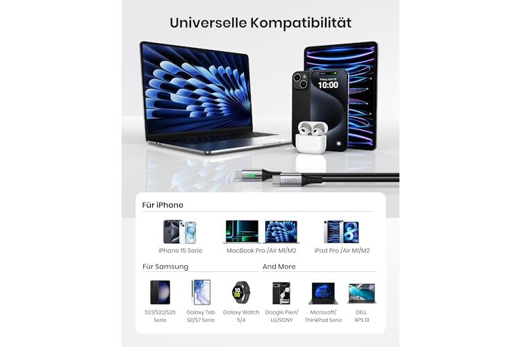 Holen Sie sich die schnellste Ladeleistung für Ihr iPhone 15: Erleben Sie die nächste Stufe des Ladens! Mit unserem blitzschnellen 100W USB-C auf USB-C Kabel erreicht Ihre iPhone 15 Serie in nur 30 Minuten erstaunliche 71% Akkuleistung. Verpassen Sie nicht diese Laderevolution!
