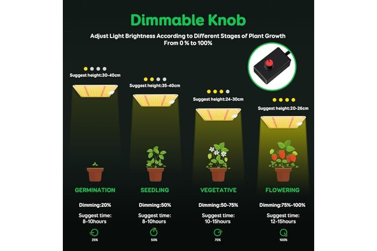 𝐃𝐈𝐌𝐌𝐈𝐍𝐆-𝐃𝐄𝐒𝐈𝐆𝐍: Die verbesserten QB-Wachstumslampen verfügen über einen Einstellknopf. Die Helligkeit eines einzelnen Lichts kann von 0% bis 100% eingestellt werden