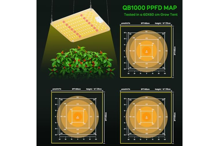Niello QB1000 LED Pflanzenlampe with dimmable, LED Grow Lampe Vollspektrum, Hohem PPFD und IR Grow Light Wachstumslampe für 2x2ft Innen Wachsen Zelt Samen Knospe Pflanze Gemüse und Blume