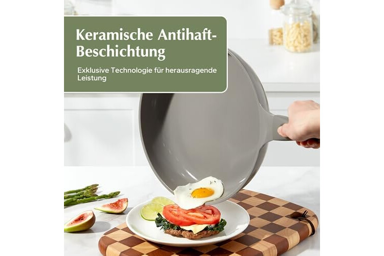 • Multifunktionalität: Das antihaftbeschichtete keramikkochgeschirr ist mit allen herdarten kompatibel, einschließlich induktion und vielen anderen modellen. Der dicke boden sorgt für eine schnelle, gleichmäßige erwärmung, so dass omeletts und steaks mühelos gegart werden