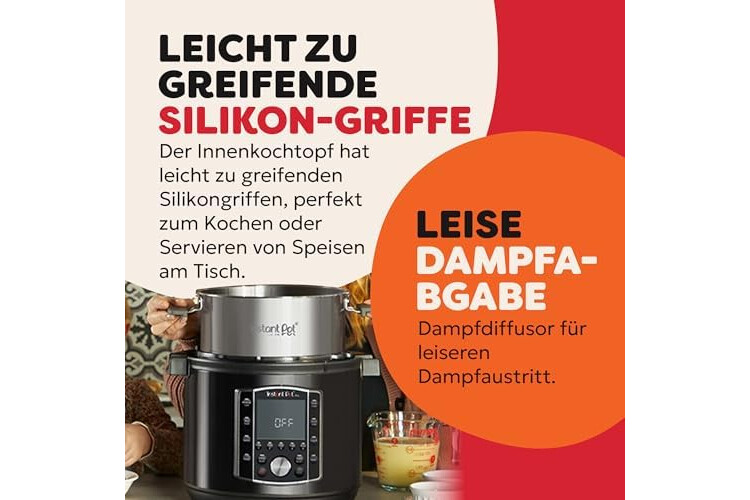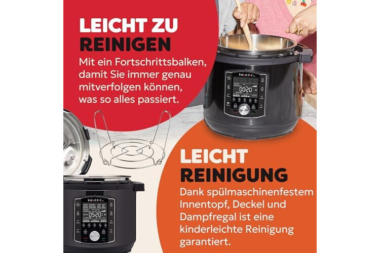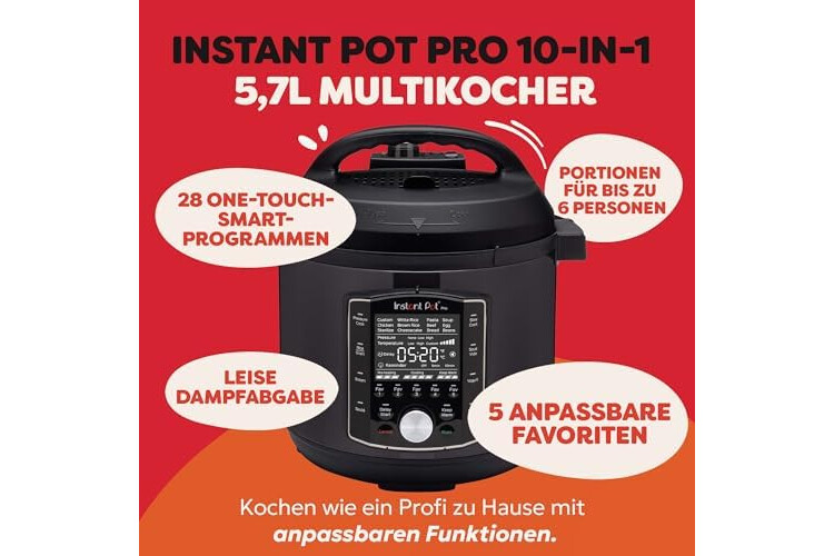 Instant Pot Pro 10-in-1-Elektro-Multikocher 1200 W, 5,7 L – Schnellkochtopf, Schongarer, Reiskocher, Dampfgarer, Sautierpfanne, Sterilisator, Joghurtbereiter, Sous Vide Gerät – Schwarzer Edelstahl