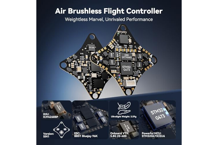 Update 5IN1 Air Brushless FC: Der erste bürstenlose 1S FC, der den G473-Prozessor mit überlegener rechenleistung verwendet und mit einem ICM42688P gyroskop ausgestattet ist. Diese komplettlösung integriert nahtlos FC, ESC, OSD, RX und Onboard 5.8 25~400 VTX und wiegt nur 3,6g