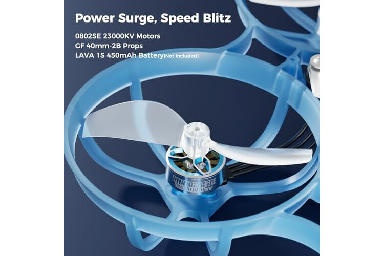 Antriebssysteme: Für ein sanftes und elegantes freiflugerlebnis verfügt der Air75 über die GF 40mm 2-Blatt-Propeller, eine größere steigung der propellerspitze, schnelle reaktion und knackige aktion und 0802SE | 23000KV Motor, der zeitnahe reaktionen und präzise folgeaktionen für unglaubliche geschwindigkeitsschübe und agile lenkung ermöglicht