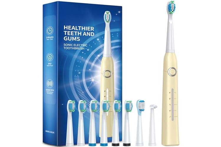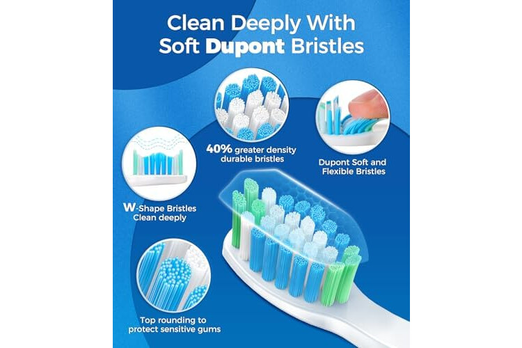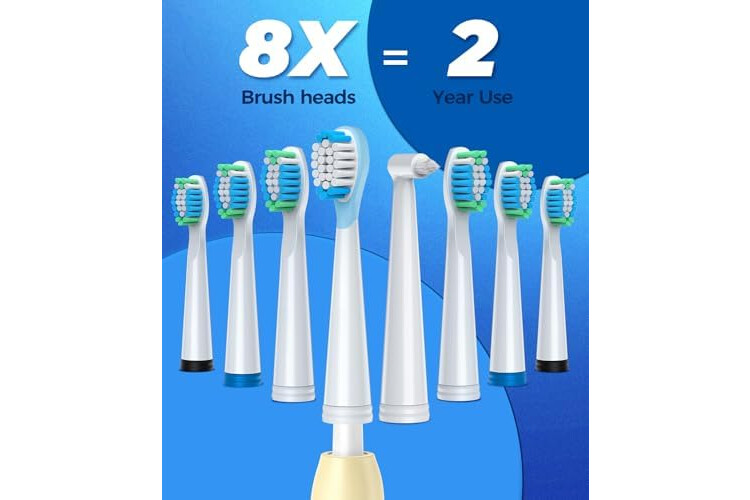Die elektrische Schallzahnbürste wird mit 8 DuPont-Bürstenköpfen geliefert, die Sie 2 Jahre lang verwenden können. Die Borsten mit hoher Dichte und Design können gründlich in das Zahnfleisch eindringen, entfernt hartnäckige Zahnflecken tief. Sie können eine Zahnbürste teilen, und verschiedene Farbhalsbänder können verwendet werden, um die Zahnbürstenköpfe verschiedener Familienmitglieder zu unterscheiden. Sie werden wissen, dass es Zeit ist, den Bürstenkopf zu wechseln.