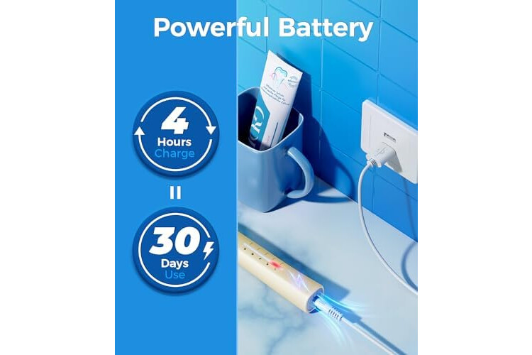 Ausgestattet mit einem leistungsstarken und branchenführenden Motor, der 40.000 °C produziert, können diese elektrischen Schallzahnbürsten für Erwachsene effektiv bis zu 99,99 % Plaques entfernen. Holen Sie sich eine gründliche 10-fache Handzahnbürste, 6 x als gewöhnliche elektrische Zahnbürste.