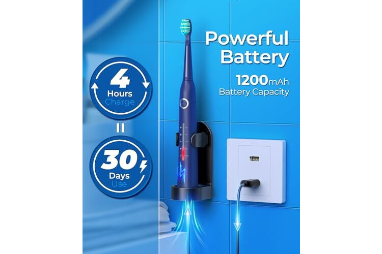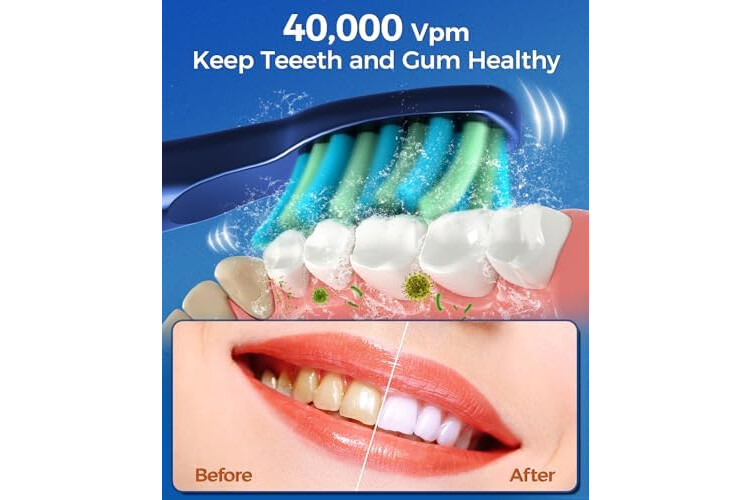 Ausgestattet mit einem leistungsstarken und branchenführenden Motor, der 40.000 °C produziert, können diese elektrischen Schallzahnbürsten für Erwachsene effektiv bis zu 99,99 % Plaques entfernen. Holen Sie sich eine gründliche 10-fache Handzahnbürste, 6 x als gewöhnliche elektrische Zahnbürste.
