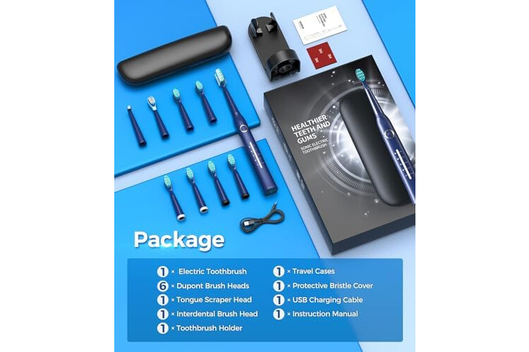 Die elektrische Schallzahnbürste wird mit 8 DuPont-Bürstenköpfen geliefert, die Sie 2 Jahre lang verwenden können. Die Borsten mit hoher Dichte und Design können gründlich in das Zahnfleisch eindringen, entfernt hartnäckige Zahnflecken tief. Sie können eine Zahnbürste teilen, und verschiedene Farbhalsbänder können verwendet werden, um die Zahnbürstenköpfe verschiedener Familienmitglieder zu unterscheiden. Sie werden wissen, dass es Zeit ist, den Bürstenkopf zu wechseln.