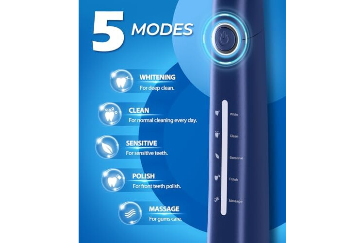 5 Hochleistungs-Modi: Elektrische Zahnbürste für Erwachsene und Kinder unterstützt 5 Modi, basierend auf Ihren spezifischen Bedürfnissen: Der Modus vibriert 40.000 Schläge pro Minute, um die Flecken zu brechen. Geht tief in die Zahnzwischenräu...