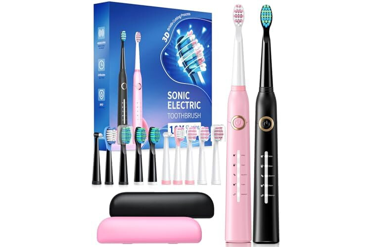 Ausgestattet mit einem leistungsstarken und branchenführenden Motor, der 40.000 °C produziert, können diese elektrischen Schallzahnbürsten für Erwachsene effektiv bis zu 99,99 % Plaques entfernen. Holen Sie sich eine gründliche 10-fache Handzahnbürste, 6 x als gewöhnliche elektrische Zahnbürste.