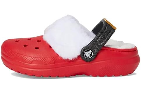 Crocs Unisex-Child Classic Holiday Lined Clogs (Little Big Kid), Varsity Red/Multi, 4 Big Kid
