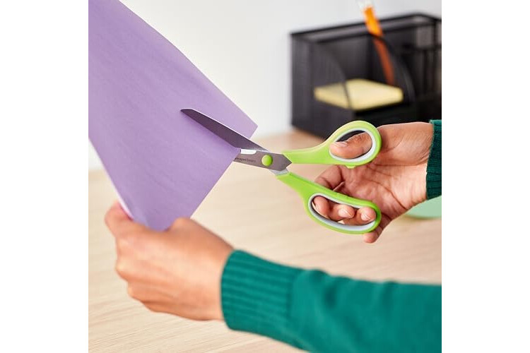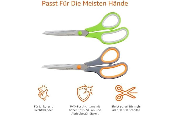 Amazon Basics Mehrzweck-Büroschere aus Edelstahl mit komfortablem Griff, PVD-beschichtet, 2 Stück, Grün Und Grau