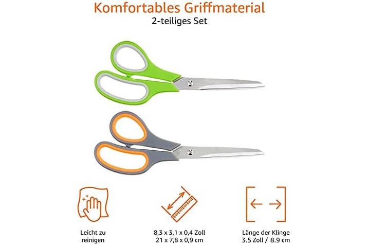 • Set mit 2 Scheren mit einer Größe von 20 cm, zum Schneiden von Papier, Karton, Stoff, Fotos und vielem mehr