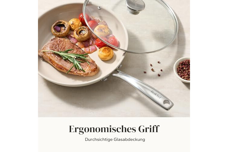Gesundheit Zuerst: Redchef verwendet eine lebensmittelechte, zertifizierte keramikbeschichtung, die frei von pfoa, ptfe und anderen schädlichen chemikalien ist. Schützen sie die gesundheit ihrer familie von grund auf, unterstützen sie das kochen mit wenig oder ganz ohne öl und erreichen sie ganz einfach eine fettarme ernährung.