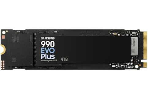 Samsung 990 EVO Plus NVMe M.2 SSD 4 TB, PCIe 4.0 x4 / PCIe 5.0 x2, NVMe 2.0 (2280), 7.250 MB/s Lesen, 6.300 MB/s Schreiben, Interne SSD für Gaming und Grafikbearbeitung, MZ-V9S4T0BW