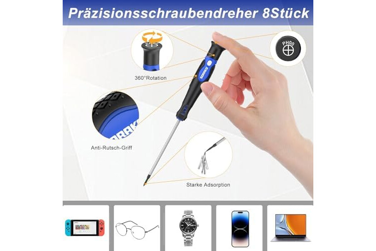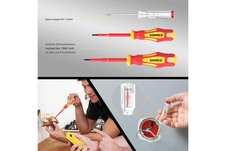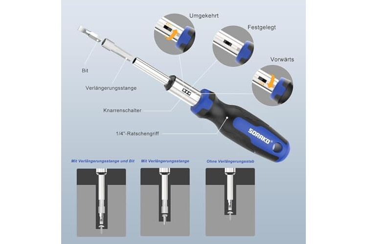 Industriequalität: SORAKO-Schraubendreher ist aus robustem Chrom-Vanadium-Stahl gefertigt, verchromt für Korrosionsbeständigkeit, langlebiger als CR-V-Stahl. Modernste Beschichtungstechnologie verhindert Rost bei Schraubenziehern und erhöht das Schraubendrehmoment. Die Schraubendrehergriffe sind ergonomisch und liegen angenehm in der Hand. Alle Schraubendreher können in der Halterung untergebracht werden. Die Halterung kann zur einfachen Aufbewahrung an die Wand gehängt werden