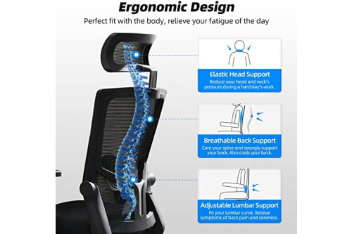 【Ergonomischer Bürostuhl】 Die S-förmige Rückenlehne und drehbare Kopfstütze(11cm, 120°Drehen) von Schreibtischstuhl bieten eine hervorragende Unterstützung für Lende und Nacken. Das verbreiterte Design der Rückenlehne passt sich vollständig dem Rücken an und stützt Ihre Schulterwirbel fest. Die Verwendung von Drehstuhl beugt Rückenschmerzen effektiv vor, indem er die natürliche Krümmung der Wirbelsäule beibehalten und Ihre Sitzhaltung korrigiert.