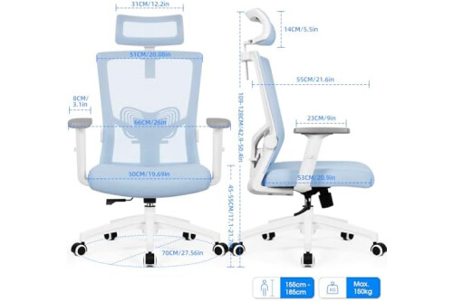 Daccormax Bürostuhl Ergonomischer Bürostuhl mit Verstellbarer Kopfstütze Lendenwirbelstütze Armlehnen Wippfunktion Bürostuhl Bürostuhl Bürostuhl 150 kg