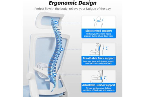 【Ergonomischer Bürostuhl】 Die S-förmige Rückenlehne und drehbare Kopfstütze(11cm, 120°Drehen) von Schreibtischstuhl bieten eine hervorragende Unterstützung für Lende und Nacken. Das verbreiterte Design der Rückenlehne passt sich vollständig dem Rücken an und stützt Ihre Schulterwirbel fest. Die Verwendung von Drehstuhl beugt Rückenschmerzen effektiv vor, indem er die natürliche Krümmung der Wirbelsäule beibehalten und Ihre Sitzhaltung korrigiert.