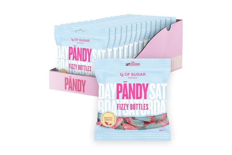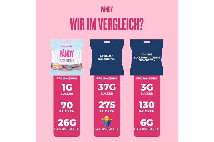 PÄNDY Fizzy Bottles Zuckerfreie Süßigkeiten Bonbons Gummibärchen ohne Zucker süßigkeiten großpackunge box zuckerfrei gummibärchen Fruchtgummis Low Carb Großpackung nur 1 g Zucker 14 x 50 g