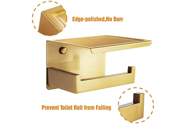 Großartige Qualität: Klopapierhalter ohne bohren aus 100% hochwertigem Edelstahl SUS304, rost- und korrosionsbeständig. Das gold Finish hat einen umweltfreundlichen, modernen und eleganten Metallic-Look.