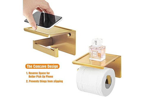HITSLAM Toilettenpapierhalter Ohne Bohren, Selbstklebend Klopapierhalter mit Ablage, Edelstahl Klorollenhalter Wandmontage, Wc Papier Halterung Rollenhalter mit Kleber für Badzimmer Gold