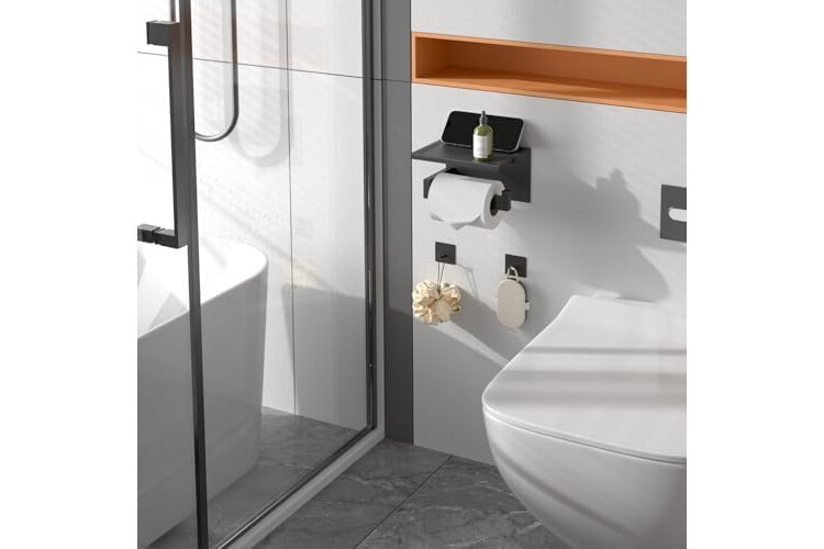 Modernes und stilvolles Design: Edelstahl, wasserdicht, rostfrei und korrosionsbeständig. Der Toilettenpapierhalter und 4 Klebehaken passen nahezu z...