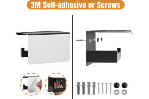 Zwei Installationsoptionen: Ziehen Sie einfach die Folie der selbstklebenden Unterlage ab und kleben Sie den toilettenpapierhalter ohne bohren auf die glatte Wandfläche oder bohren Sie mit Schrauben, um den Toilettenpapierhalter zu halten.