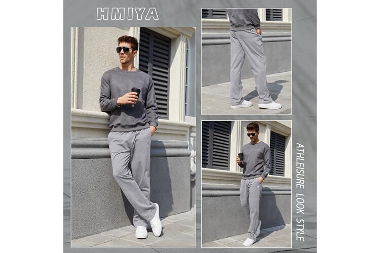 HMIYA Herren Jogginghose Baumwolle Sweathose Lange Atmungsaktiv Sporthose Yogahose Klassische Trainingshose mit Taschen(Hellgrau,XL)
