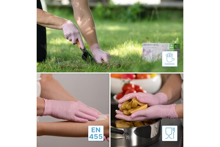 200x ARNOMED Einweghandschuhe Rosa (2x100 Stück), Einmalhandschuhe M, Nitril Handschuhe Einweg, Nitrilhandschuhe puderfrei, Gummihandschuhe Einweg, Schutzhandschuhe, Handschuhe Nitril in XS, S, M, L