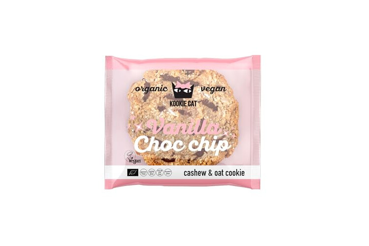Kookie Cat Vanille Schokochip - Vegane Cookies Einzeln Verpackt, Glutenfrei, Sojafrei, Bio, Cashew & Hafer - 12 X 50g Multipack