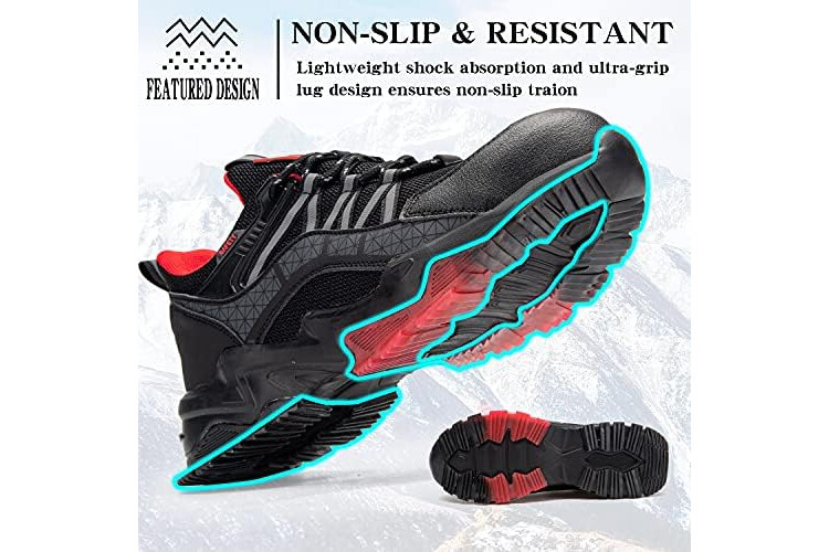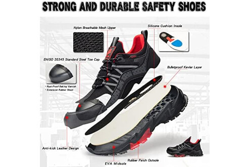 TAERGU Sicherheitsschuhe Herren Damen,Arbeitsschuhe S1 S3 Stahlkappe Leicht Stahlkappenschuhe,Schwarz,45EU