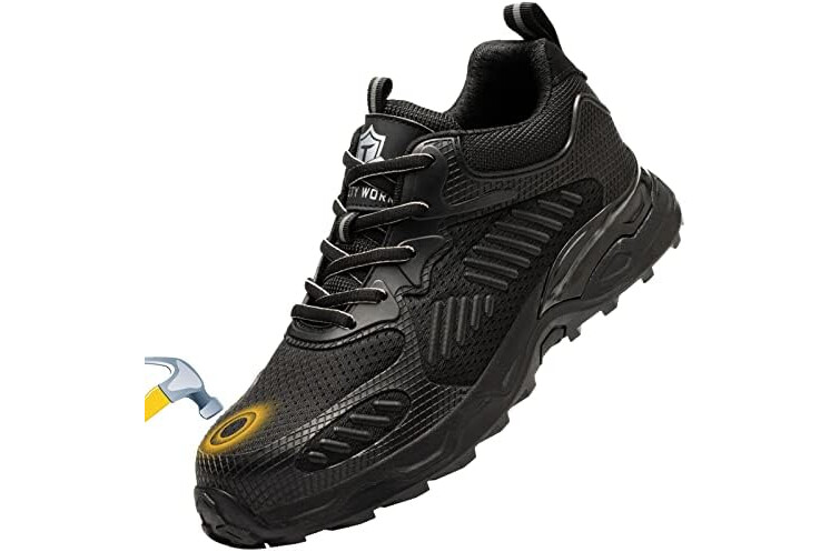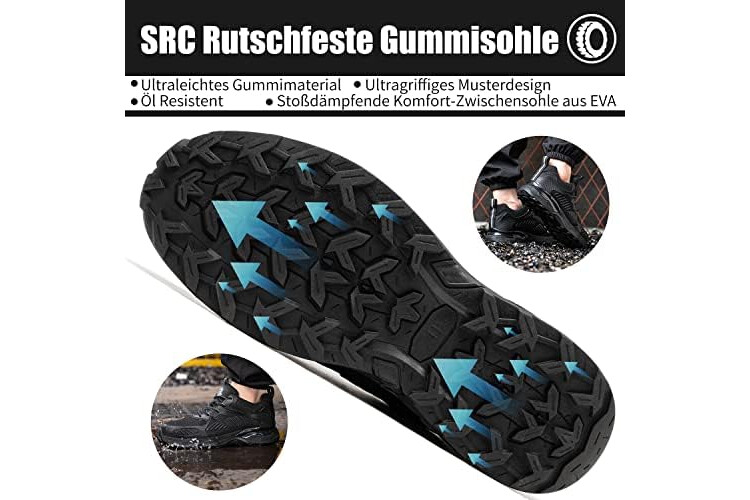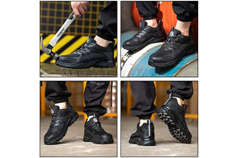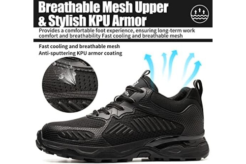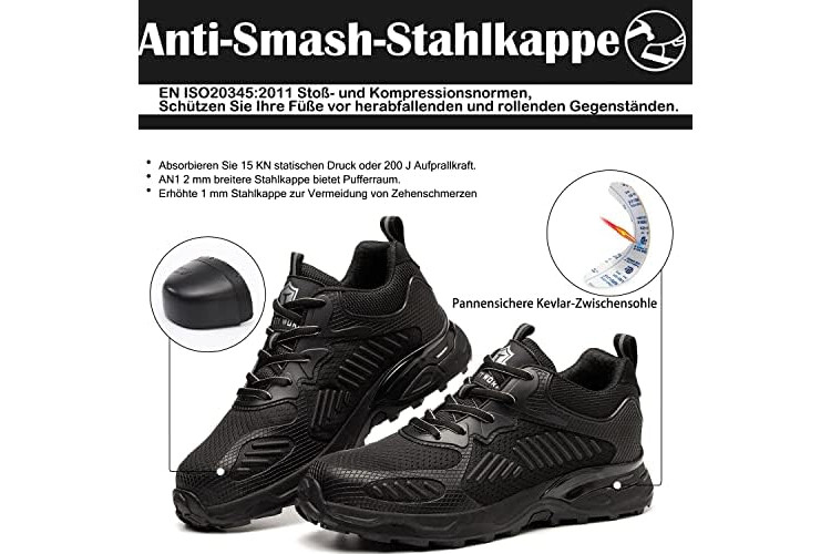 Sicherheitsschuhe Herren Damen-S1 Arbeitsschuhe Leicht SBP Schnürsenkel Stahlkappenschuhe Safety Shoes,Schwarz,EU40