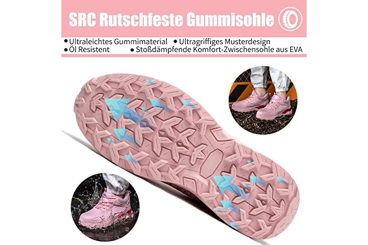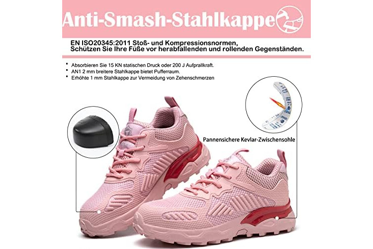 Sicherheitsschuhe Herren Damen-S1 Arbeitsschuhe Leicht SBP Schnürsenkel Stahlkappenschuhe Safety Shoes,Rosa,EU37